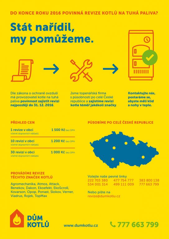 Do konce roku 2016 povinná revize kotlů...